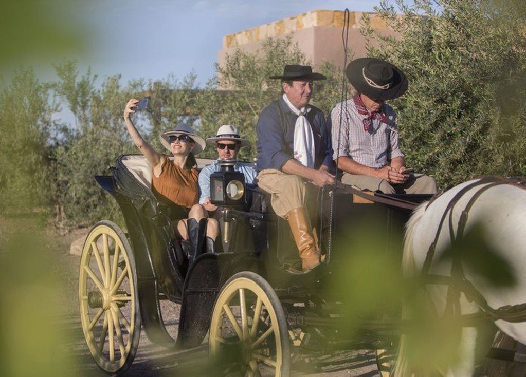 Llegaron en un hermoso carruaje de CarruajesAntiguos.com llevados por Mario Pandolfino, lo cual sorprendió a Pampita y transformó el viaje en algo muy especial.